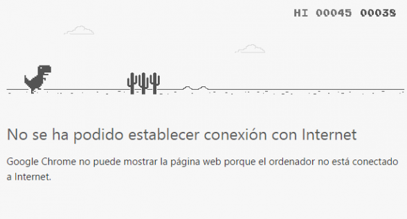 Muchos de vosotros (los que seáis usuarios de Google Chrome) os habréis fijado en el triste dinosaurio que aparece en la parte superior del mensaje que nos advierte de que no hay conexión cuando Internet falla. Pues bien, resulta que este dinosaurio es precisamente el protagonista de un juego oculto que los desarrolladores del juego han introducido para que pasemos los ratos muertos mientras reiniciamos el router o esperamos a que nuestro proveedor de servicio reestablezca el servicio.